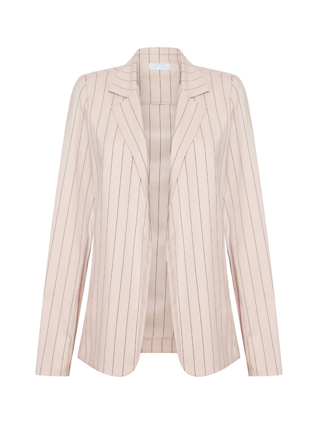 Toto volně střižené béžové sako s výraznými širokými pruhy je ideálním kouskem pro každodenní i slavnostní příležitosti. Jeho uvolněný střih zaručuje pohodlí po celý den, zatímco delší délka a otevřený přední díl mu dodávají moderní, nadčasový vzhled. Díky jednoduchému a čistému designu se skvěle kombinuje nejen s kalhotami ve stejném vzoru