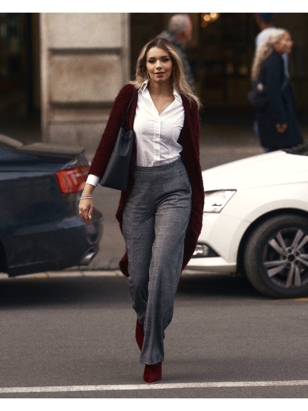Šedé kostkované kalhoty