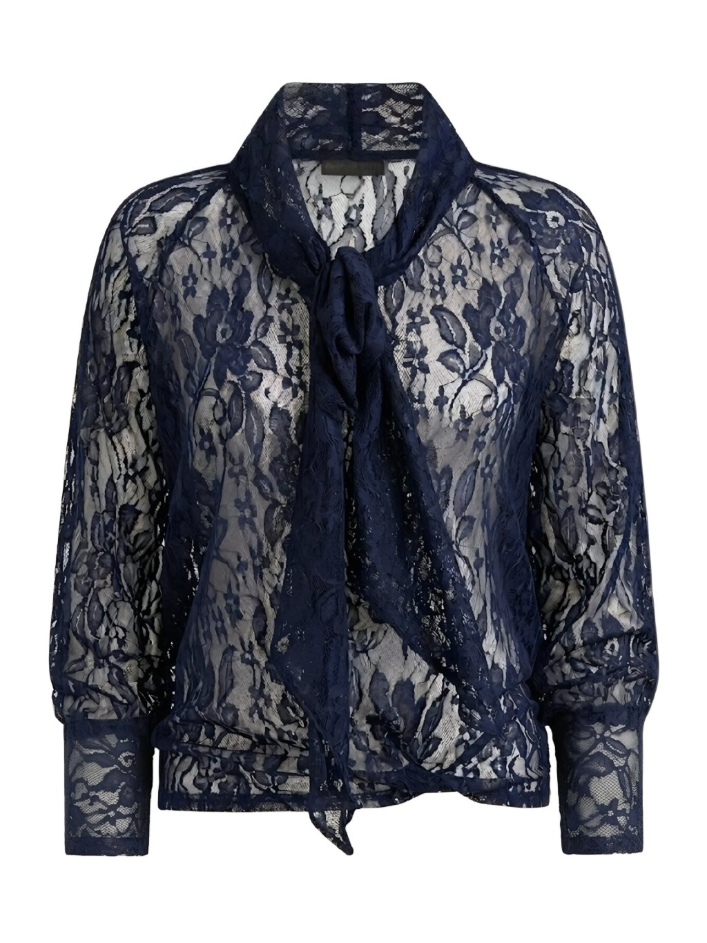 Tmavě modrá krajková košile s vázačkou