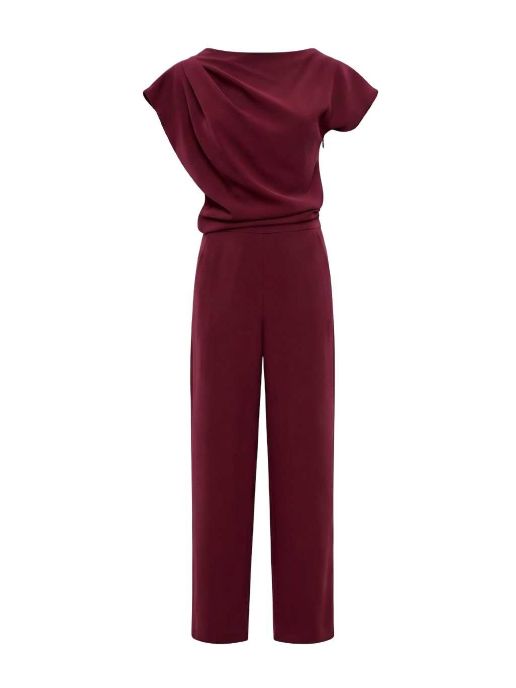 Vsaďte na jednoduchost s výrazem. Tento sofistikovaný overal ve vínové barvě je ztělesněním moderní elegance . Asymetrický výstřih odhalujícím jedno rameno a jemné skládání v horní části dodává outfitu strukturu a originalitu. Kalhotová část s volnějšími nohavicemi krásně prodlužuje postavu a poskytuje maximální pohodlí. Skrytý zip a praktické kapsy jen podtrhují nadčasový a funkční design.
